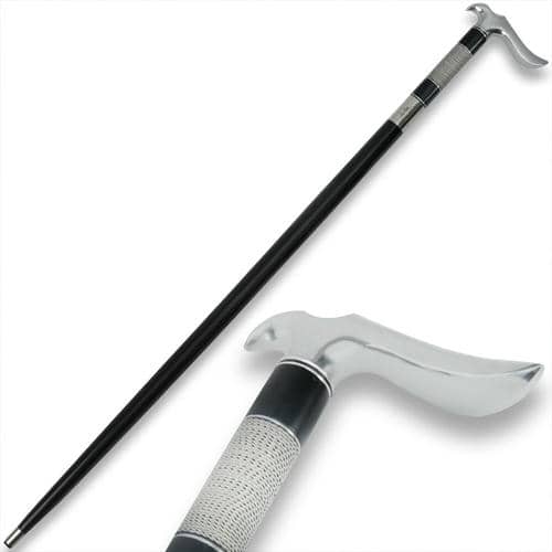 Designed by legendary craftsman Gil Hibben, the Hibben Walking Cane combines style and functionality in a sleek, modern design. This 37 3/8" matte black cane offers a distinguished look with its stainless steel spacers and eye-catching silver wire-wrap accent. Whether for support or style, this cane is crafted with precision and durability in mind. The custom-designed stainless steel hook handle is heavy-duty, providing a comfortable and secure grip. Equipped with a rubber toe for stability, the Hibben Walking Cane gives you reliable footing on a variety of surfaces. Perfect for collectors and cane enthusiasts alike, this piece is both practical and uniquely Hibben.