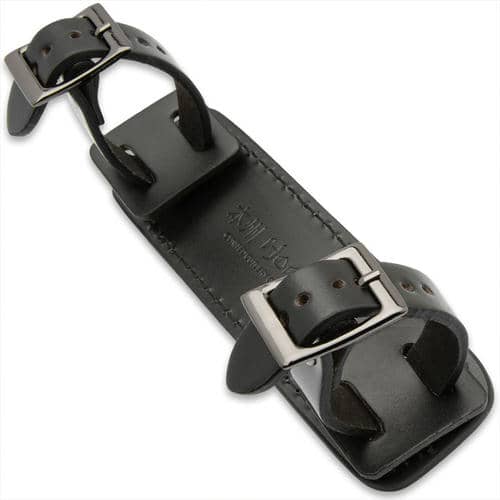 The Honshu Leather Frog is the perfect accessory for securely carrying your Honshu Boshin swords. Designed for vertical carry, this heavy-duty leather attachment offers MOLLE compatibility, ensuring a firm, reliable fit. The reinforced seams and durable buckle strap closures provide long-lasting performance, keeping your sword within easy reach at all times. Crafted specifically for Honshu swords UC3176 and UC3125, this leather frog is built for functionality and convenience. Whether you're on the move or displaying your weapon, the adjustable design allows for a secure, comfortable carry. Elevate your sword setup with this expertly crafted Honshu accessory.
