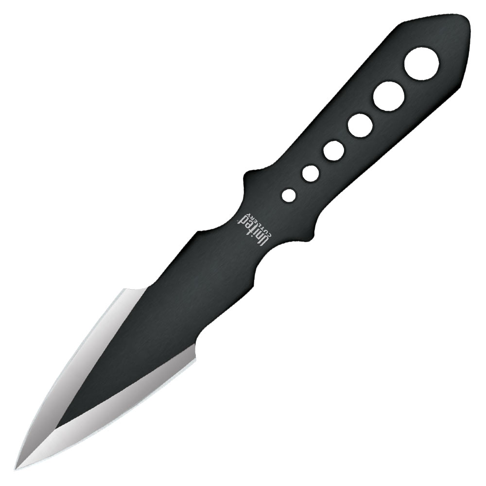 These lightning bolt throwers are constructed from one-piece of stainless steel with a black-coated finish. Includes triple pocket black nylon sheath to hold all three throwers. 7 1/4" ov.