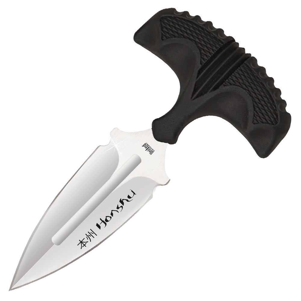 This small Honshu Push Dagger is constructed from one solid piece of 7cr13 stainless steel with double edge styling and rubberized, contoured grips for pure thrusting power. 4 5/8" ov, 2 7/8" bl.